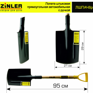 Лопата автомобильная штыковая прямоугольная с деревянным черенком и ручкой